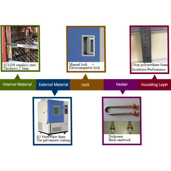 Material of the test cabinet is high quality SUS304 stainless steel.